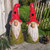 Zaunfiguren/Zaunhocker Hedwig mit gelbem Kleid und Hermann in Grün mit rotem Hut als Paar.
