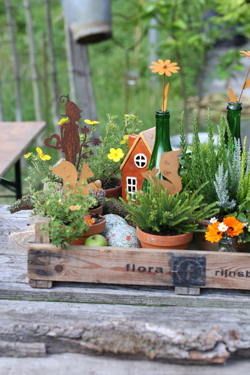 Tipp: Zum Bepflanzen ist es ratsam Jutestoff/Sackstoff in die Kiste zu legen, so sind die Pflanzen vor Staunässe geschützt aber das Gießwasser fließt nicht komplett durch. Zusätzlich ist der Stoff sehr dekorativ.