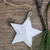 Weißer Stern aus Holz im Shabbylook mit Jutekordel zum Hinhängen. In drei Größen erhältlich.